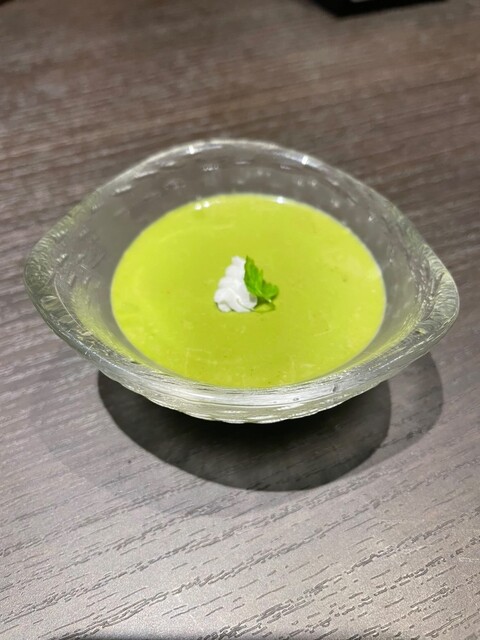 食後にはお茶のムース、甘さは控えめで、お茶の美味しさをじっくりと味わい最高のスイーツになっていますよ