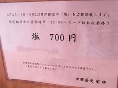 昨年のGWにも限定の「塩」を提供していたのですが、今年も3日〜5日の3日間限定で塩をやるとのこと。