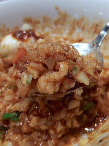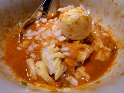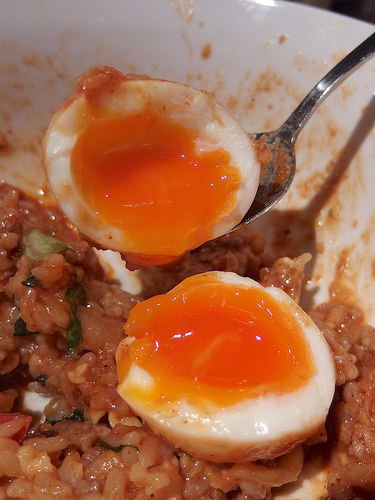 味噌サルサソース+米+半熟玉子+とろけるチーズ。。。これでまずいわけがないw