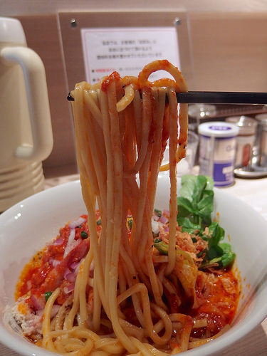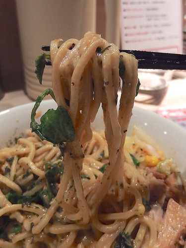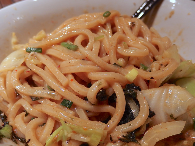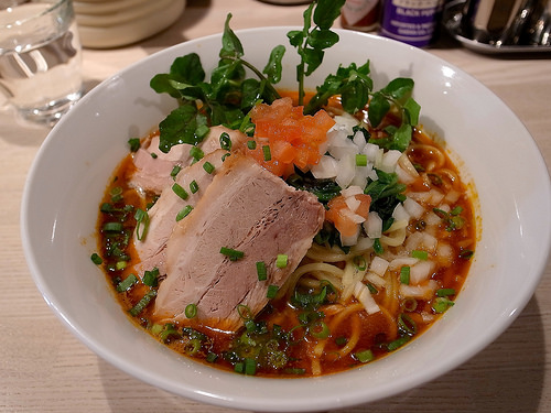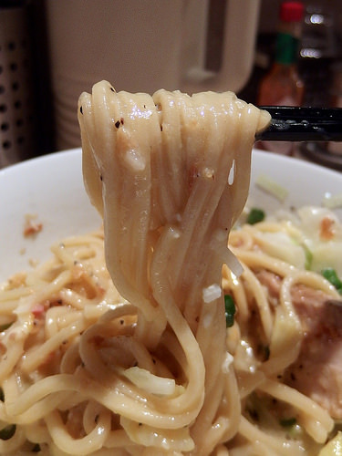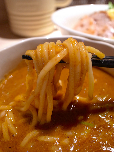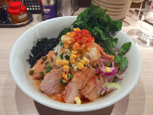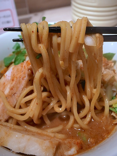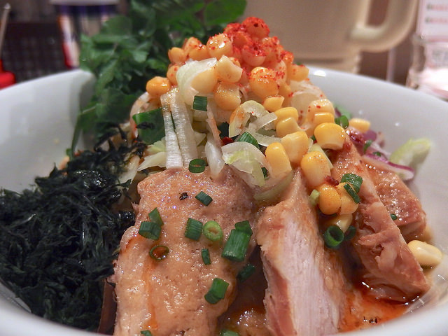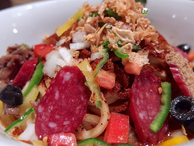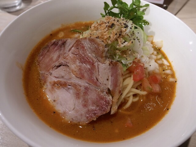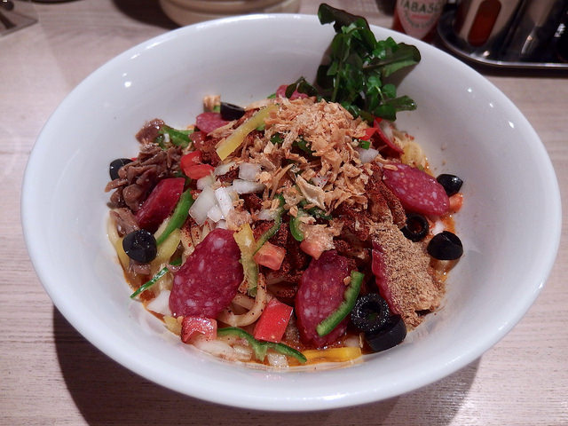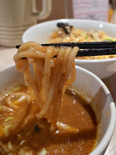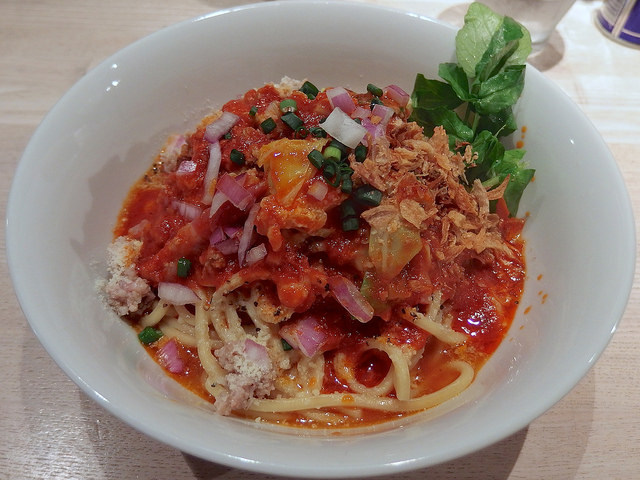 主にトマトソースとピザ用スパイスで組み立てられるピザソバに対し、こちらは味噌チーズソースとメキシカンスパイスで組み立てられる、ちょっとやんちゃなTexMex風味な一杯となります。