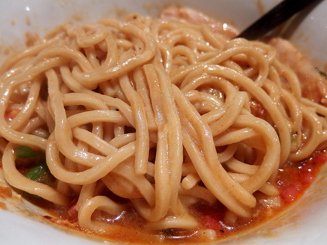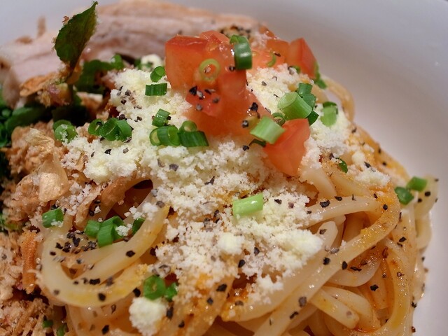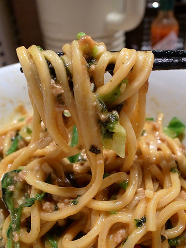 あと、この麺とソースごとソフトシェルで包んで食べても面白いだろうなぁ(新宿の方でそんなメニューを始めたお店があるみたいですね)。アボカドやライム、コリアンダー等との相性もよさ気。