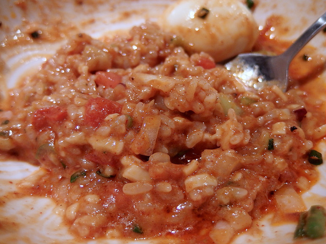 固形物完食後は、丼を上げて〆のリゾット。