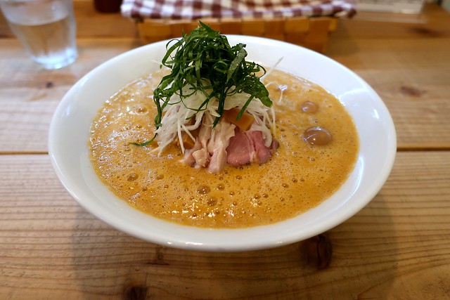 オープン直後に食べた時は、いい意味で素人っぽいというか、ラーメン好きなフリークがコスト度外視で自分のこだわりを詰めこんだラーメンを作ってみた、という印象だったのですが、今回の一杯は当時に比べ驚くほど洗練されており、完全に「プロの作品」。