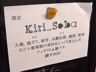 何がおすすめか聞くと「まだ食べたことなければ、Kiri_sobaの潮かな?」とのこと。前回醤油をいただいていたので、では今日は潮で。