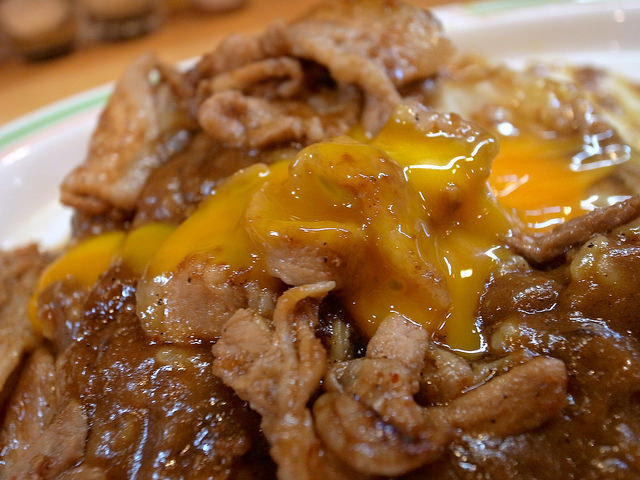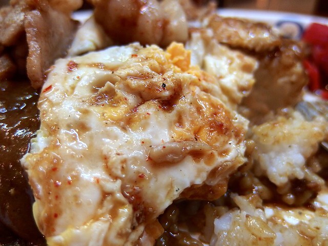 あのドロリとした濃い味ルーと豚生姜焼き、そして生卵のコントラストは、濃い味好きには一度味わってしまったらクセになること請け合い。
