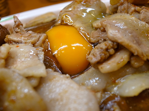 そしてこのルーとベストマッチングを見せるのが肉と生玉子。
