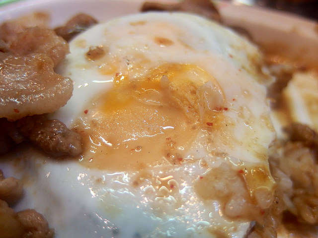 ちなみにこのメニューは玉子が生か焼き(いわゆるターンオーバー、両面焼き)かなしか選べるので生で。