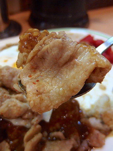 ここに加わるのが、生姜醤油で炒められた豚バラ肉。