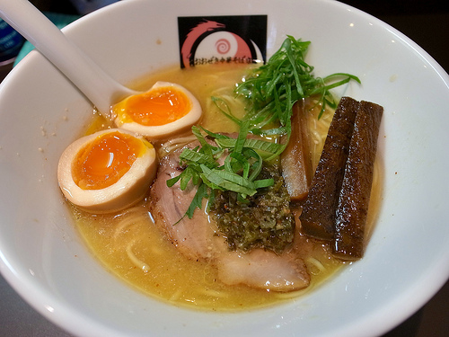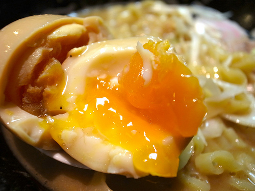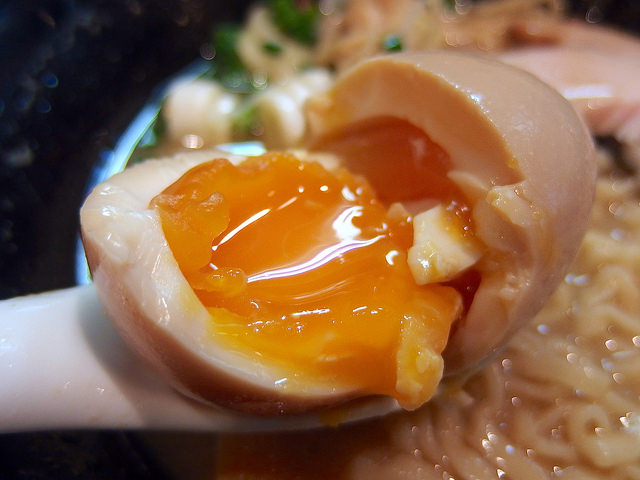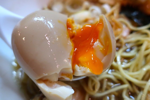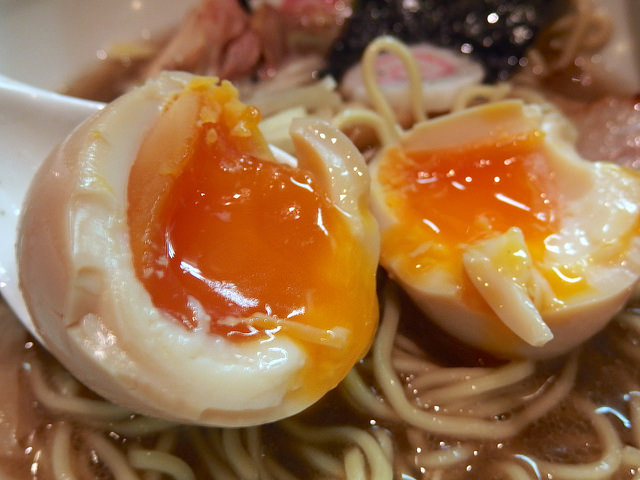 味玉はトロンと流れる黄身に生姜醤油が香る独特な味わい。これは都内でも3本の指に入る好みの味玉なんですよね。ぜひオススメしたいトッピングです。