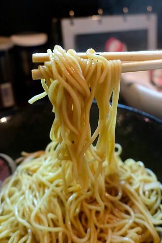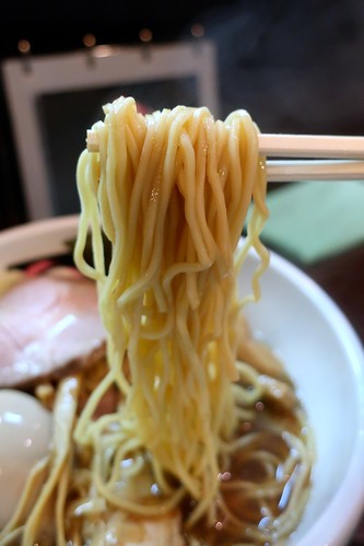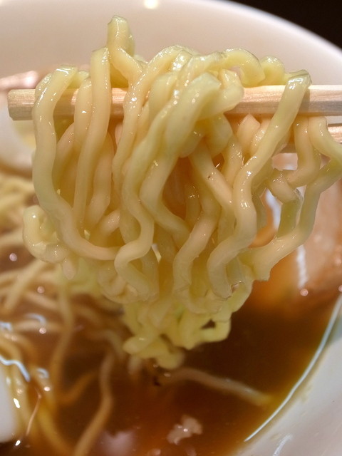 タレで飲ませるスープと出汁で飲ませるスープがあるとしたら、おおぜきさんのスープはタレの旨さが決め手なのかなぁ、と。当然出汁も真面目に引いているのですが、このタレあってのこのお店の味、という気がします。久々に飲むけど、やっぱ好みだなぁ。塩梅は強め。