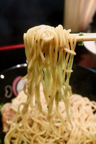 此方のレギュラーメニューの麺は全て大栄食品製ですが、この麺は、店主さんの修行元、目黒「づゅる麺池田」の製麺室を間借りして打った自家製麺(他家製麺?)とのこと。