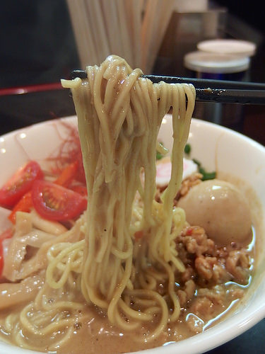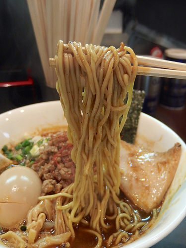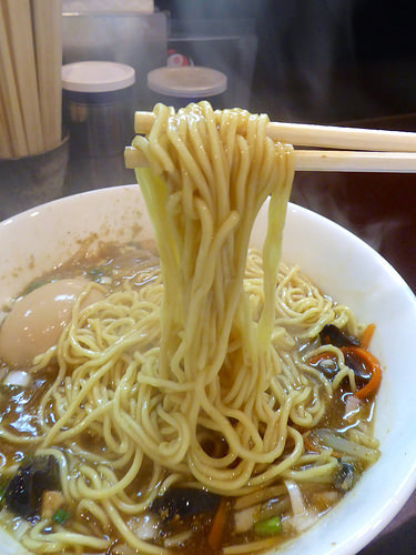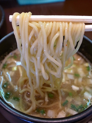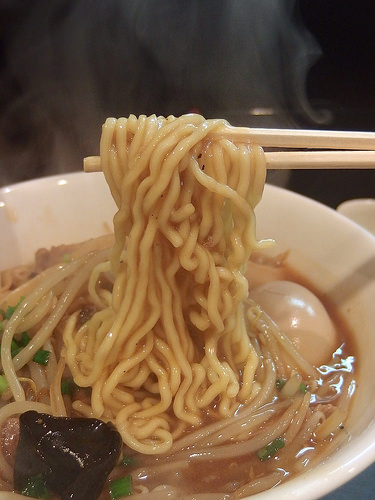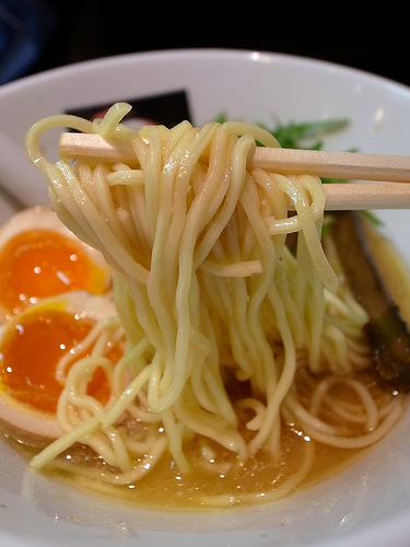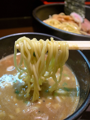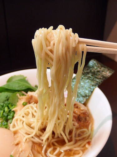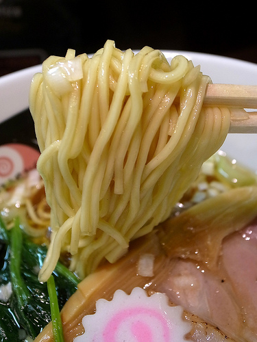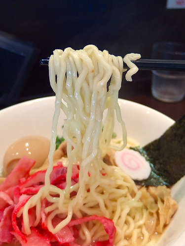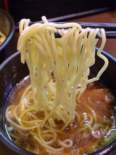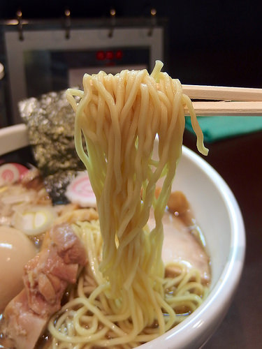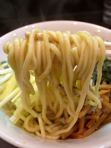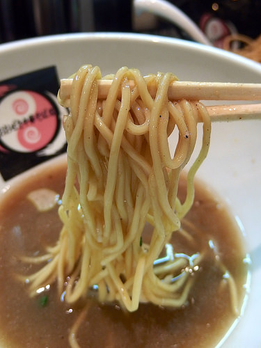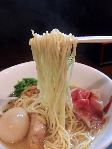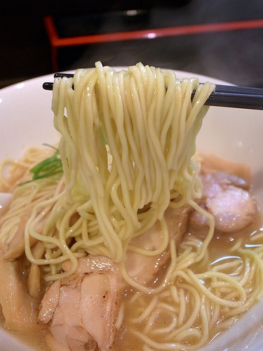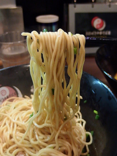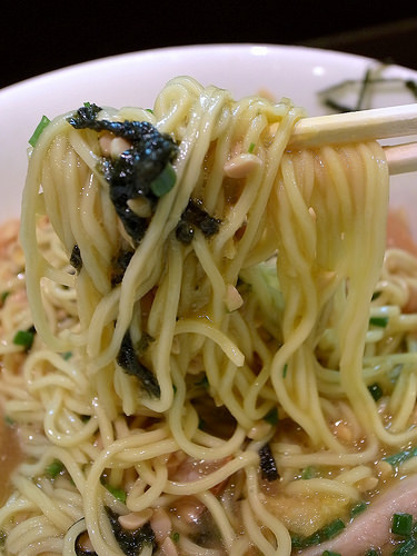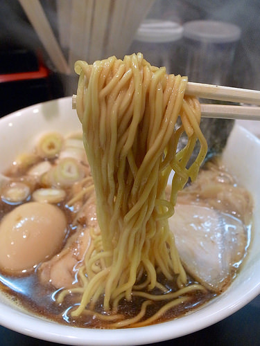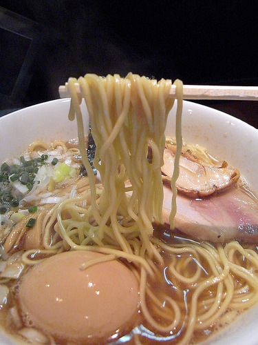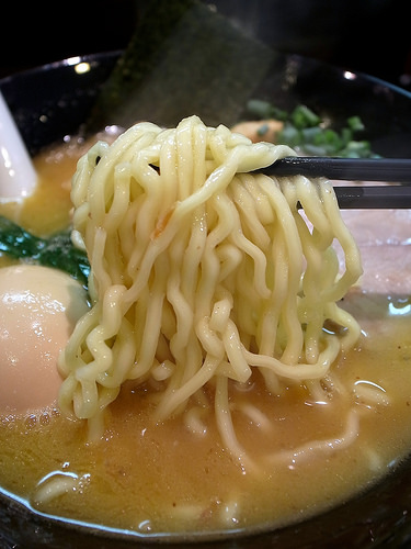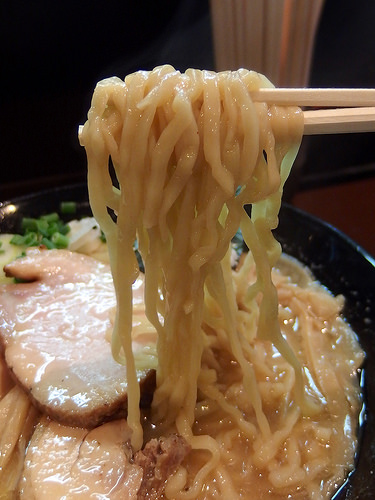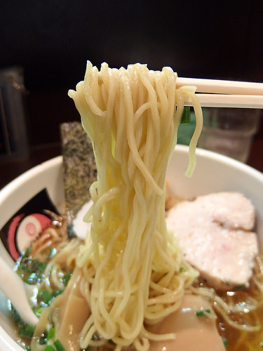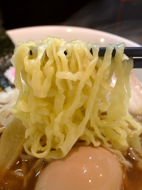 麺はキレのあるスープをしっかり引き上げ、パツパツとした小気味良い歯ざわりが特徴的な低加水の細麺です。