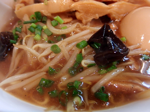 メンマは穂先。シャクシャクの食感がいい感じ。白ネギはいい清涼剤。海苔とナルトはいいサポート役。