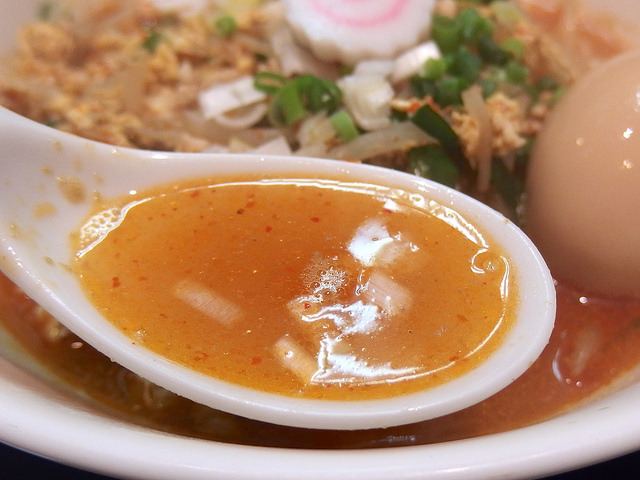 タイプとしては、粘度低め、魚介出汁が香る甘く優しい味噌汁タイプ。しかし表面のラードによりしっかりラーメンとしての口当たりの強さもあります。