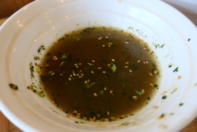 また、麺側の海苔やゴマがつけ汁側に徐々に入ってくると、香ばしさが増していい感じ。