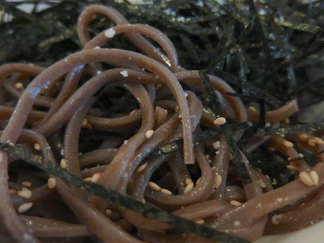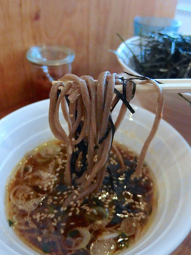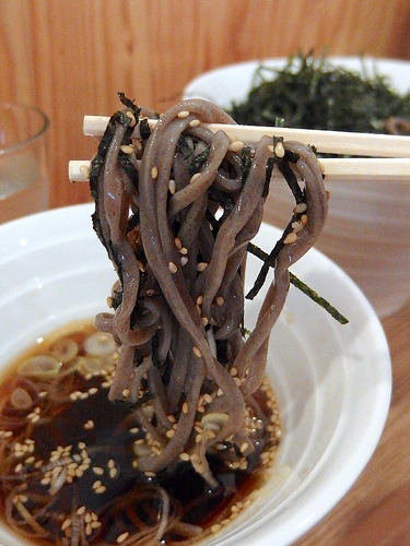 そばの上には、麺が全く見えないくらい、これでもかと載せられた白ゴマと刻み海苔。