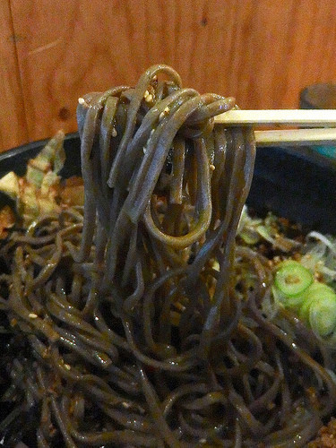 そばは色黒で、タピオカ練り込みのゴワボキ麺。このコシは結構クセになるんですよねぇ。