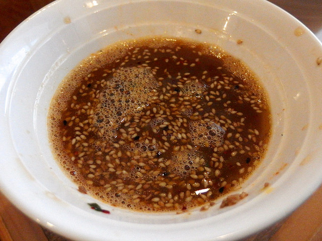 全体的に胡麻感は強めですが、辛味は控えめなので、卓上の辛味ペーストを入れて辛さをアップさせましょう。