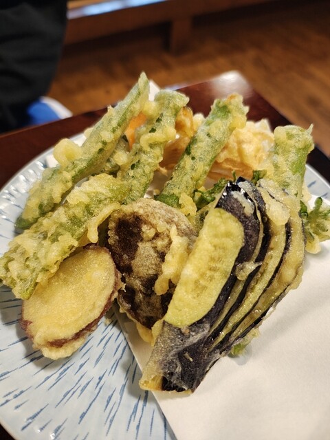 天ざるの天ぷら盛り合わせには海老天が入っていて、野菜天ぷら盛り合わせは野菜がたくさん。