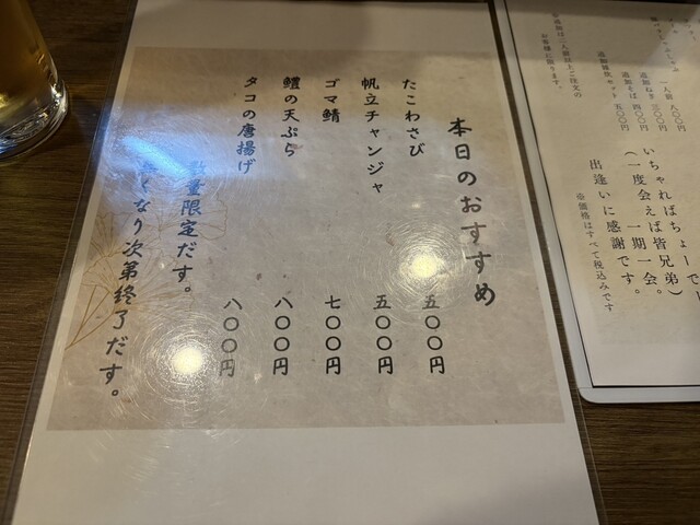 すでに少しご飯を食べてしまっていたため、少しのつまみとお酒をいただきに入店。