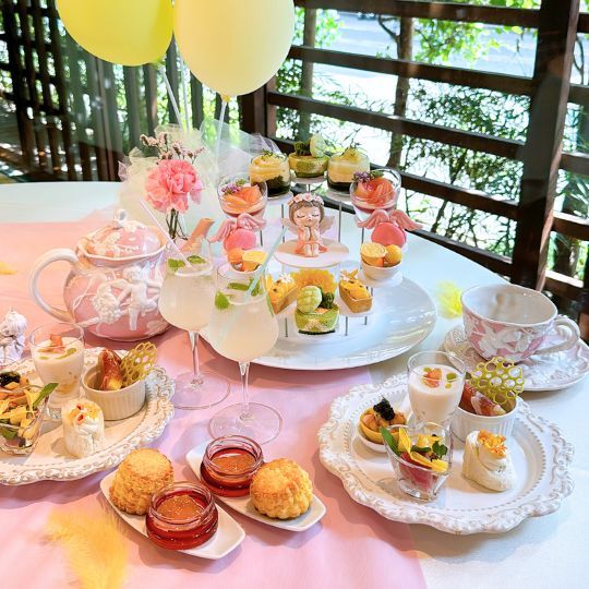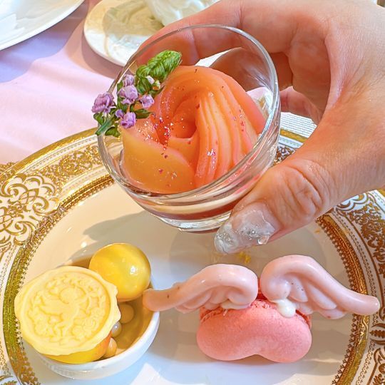 女友達と二人でももメロントロピカルの天使のアフタヌーンティーをいただきました。