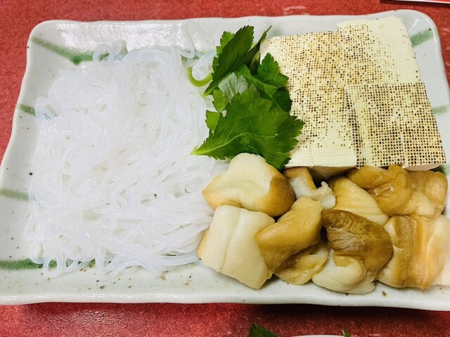 お肉以外もクオリティーが高いです。緑がきれいな京野菜の九条ネギ、淡路島産の玉ねぎ、三つ葉、焼き豆腐、糸こんにゃく、麩がつきます。とてもシンプルですが、このシンプルさが素材の味を感じることが出来て好きです♪