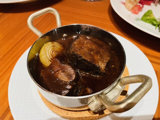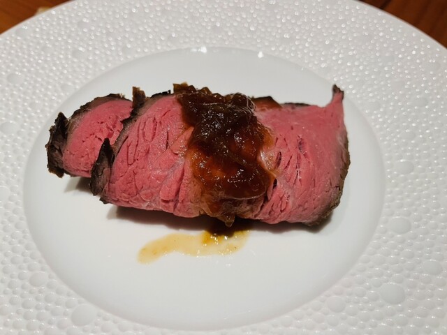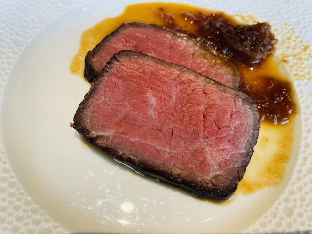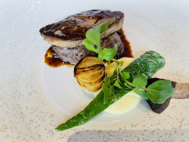 メイン料理は国産牛とフォアグラのロッシーニ風トリュフのソースをオーダーしましたが、フォアグラは苦手なので抜いてもらいました。