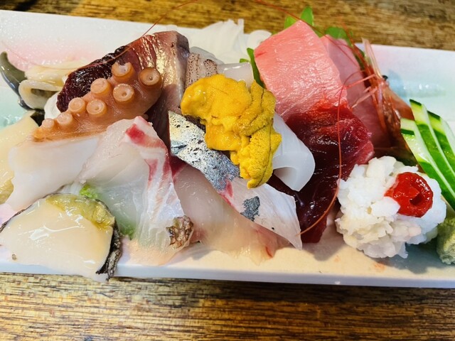 タコの煮物、タケノコの煮物、剣先イカ造り、
