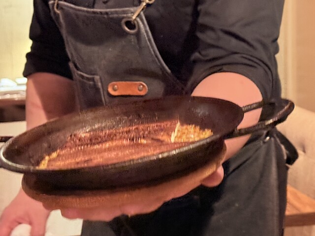 このお店の名物メニューのパエリアはシェフ自らサーブしてくれます