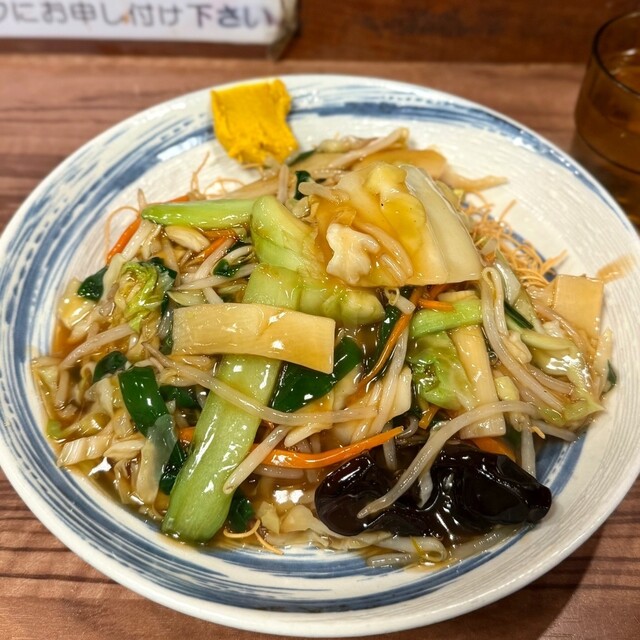 そこに熱々の野菜餡がどーんと。旨い。