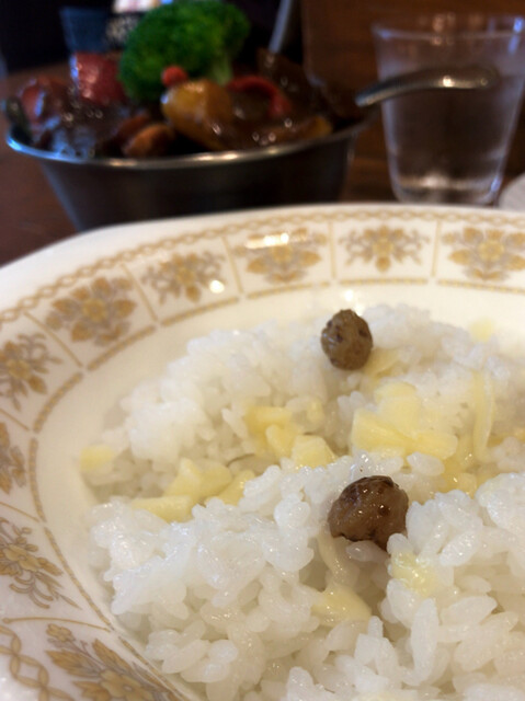 そしてときどき、褐色のカレーソースを纏った、上質でやわらかい一口サイズの牛肉も。