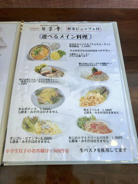 メイン料理はパスタ・そば・ハンバーグ・揚げ物など多岐にわたります。