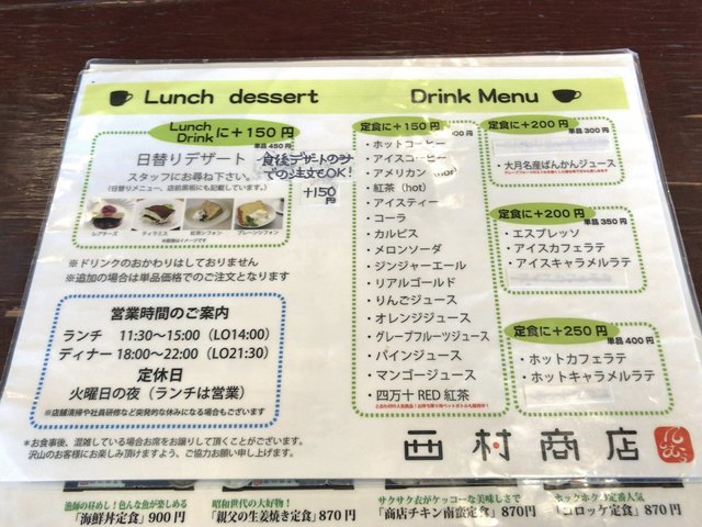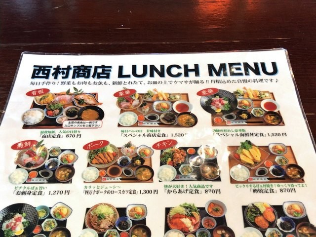 定食メニューいろいろ。価格は定食で品数豊富&豪華&新鮮なお魚御膳(西村商店@高知市・高須)
