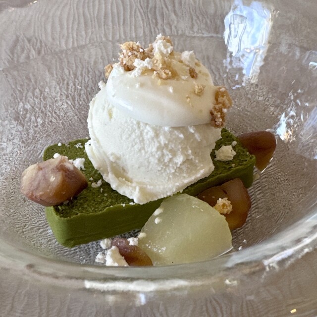 お昼のフルコース(\4,800) 季節の手作りデザート:抹茶とこしあぶらのケーキ