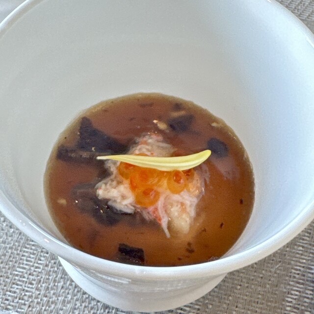ランチ・プチコース(\3,500) 玉葱のフラン、香茸のソース、蟹といくら