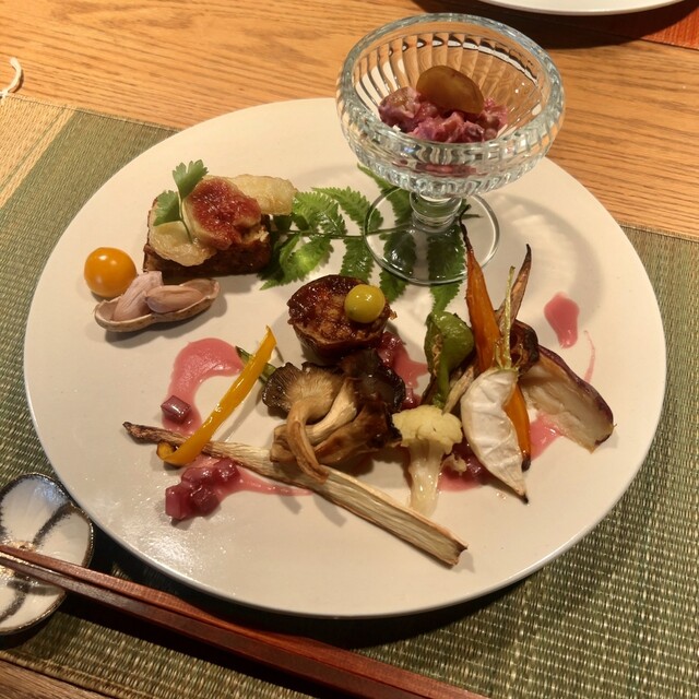 前菜にあたる、安曇野の旬菜プレートが素晴らしい。