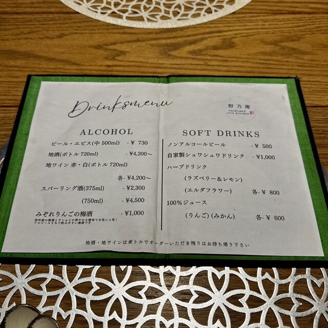 旬野菜の野々庵コース(¥6,600) 野々庵ティー