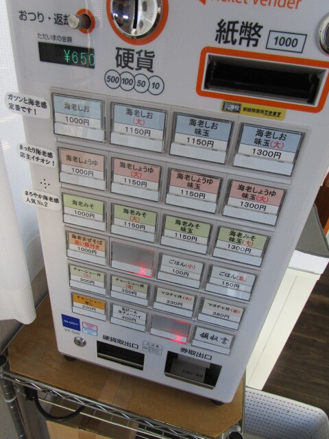 メニューは、海老しお、海老みそのラーメン各750円と、海老まぜそば700円がメイン。海老しおが、以前から提供されていた海老そばになるようで、海老みそが新しい味のようです。それぞれトッピングなどで値段がわかるようになっています。その他、ぎょうざやご飯類などが存在します。