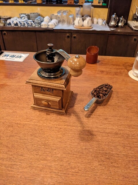 「珈琲 森の時計」で、ケーキ“根雪(ねゆき)”とブレンドコーヒーのセットを楽しみました。カウンターで自分で豆を挽く“ガリガリ”という音が心地良く、その香りに包まれながら、しっとりとしたホワイトチョコムースとレアチーズ風ムースが重なる“根雪”は、爽やかな酸味と上品な甘さがじんわり広がります。