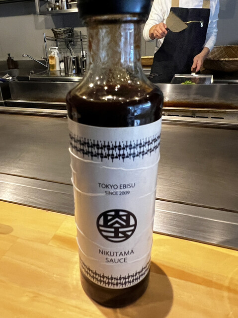 鉄板カウンター席と、中二階に少し個室感を感じるテーブル席があり、照明が少し暗めの落ち着くオシャレな店内。
