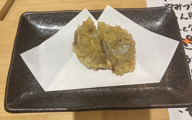 追加で他にも天ぷらを食べました。特徴的だったのは、シイタケゴルゴンゾーラですね。ゴルゴンゾーラチーズに熱が加わることで、チーズの香りがかなり強く漂ってきます。自分は好物ですが、カウンターでとなりにチーズ嫌いな人がいたら顔をしかめるくらい強めの匂いがします。チーズが温まっているので、ゴルゴンゾーラの刺激が和らいでいるので匂いほどクセはなく、チーズ好きな人にはおすすめです。