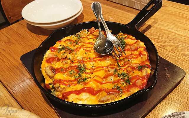 鉄板一面にオムレツが敷き詰められて、中にはポテトが入っていてこれも美味い!