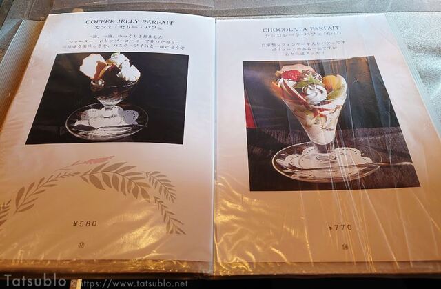その中からボクが注文したのは、「カフェゼリーパフェ」と「マイルドブレンド」のコーヒー。