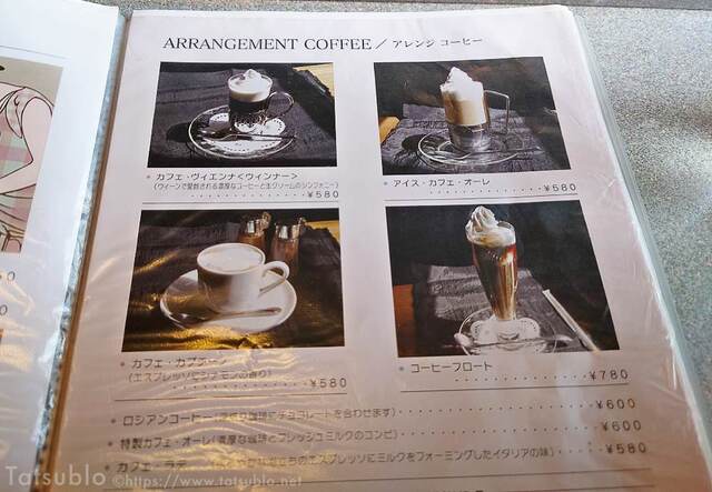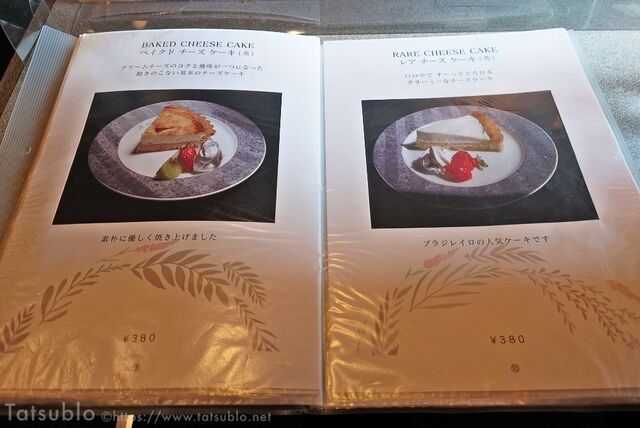 席に着いたときにウエイターさんから食事か喫茶利用か聞かれるので、喫茶利用と答えるとこちらのメニューを渡されました。