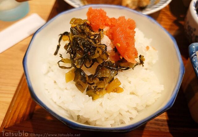 お目当ての食べ放題の明太子、高菜は別容器で運ばれてきます。