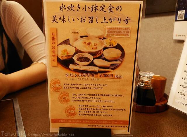 テーブルには水炊きの食べ方のpopも。