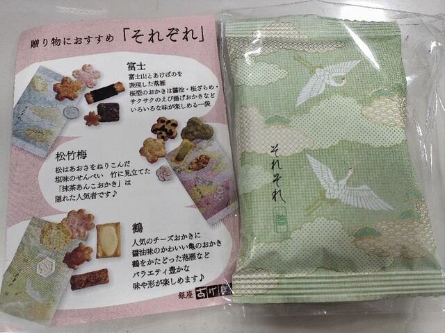 LINEクーポンで「それぞれ」のおせんべいをいただきました。以前立ち寄った際はお客さんがたくさんいて忙しそうでしたが、今回はたまたまお客さんが居ないときで待たずに接客してもらえました。いつも丁寧な接客で新商品の案内などもしていただきました。