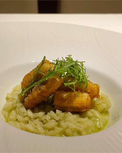 江戸前穴子のフリット アスパラガスのリゾット