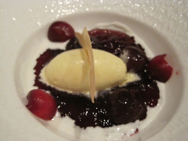 ・デザート ブラックチェリーのジュレ仕立て バニラアイス添え