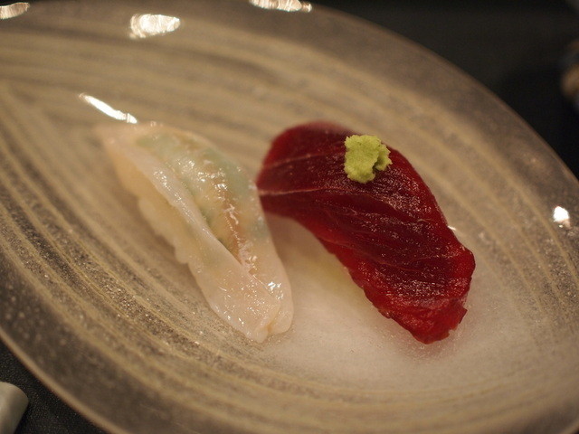 お寿司は、シャリ自体は柔らかめで個人的にイマイチなものの、ヅケにした鮪の香りが素晴らしい。